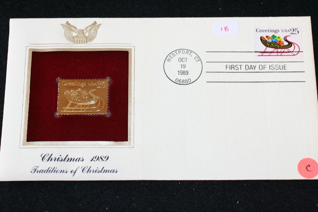 But probably just the gold content. In the albums and in near-perfect condition expect to receive about 1-. Add to Favorites First Day Of Issue 22k Gold Replica Stamp - Christmas 1989 - Madonna and Child.