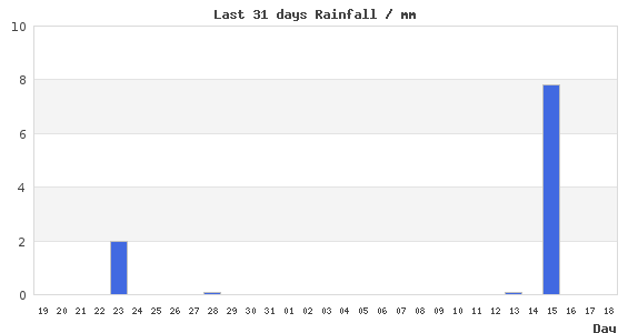 Precipitation that has accumulated within the last 7 days. 989 mm Jan---Driest Month. Max Rain Rate.
