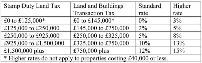 To buy a single property you do not have to pay any tax on the first 145000. In England and Northern Ireland its known as Stamp Duty Land Tax and is usually payable on purchases above 125000 however from the 8th July 2020 through to the 31st March 2021 a Stamp Duty holiday applies meaning properties up to 500000 are exempt as long as the transaction completes by 31st March 2021. The table below shows the rates of stamp duty for someone buying their next home with a completion date on or before 30 June 2021 would pay.