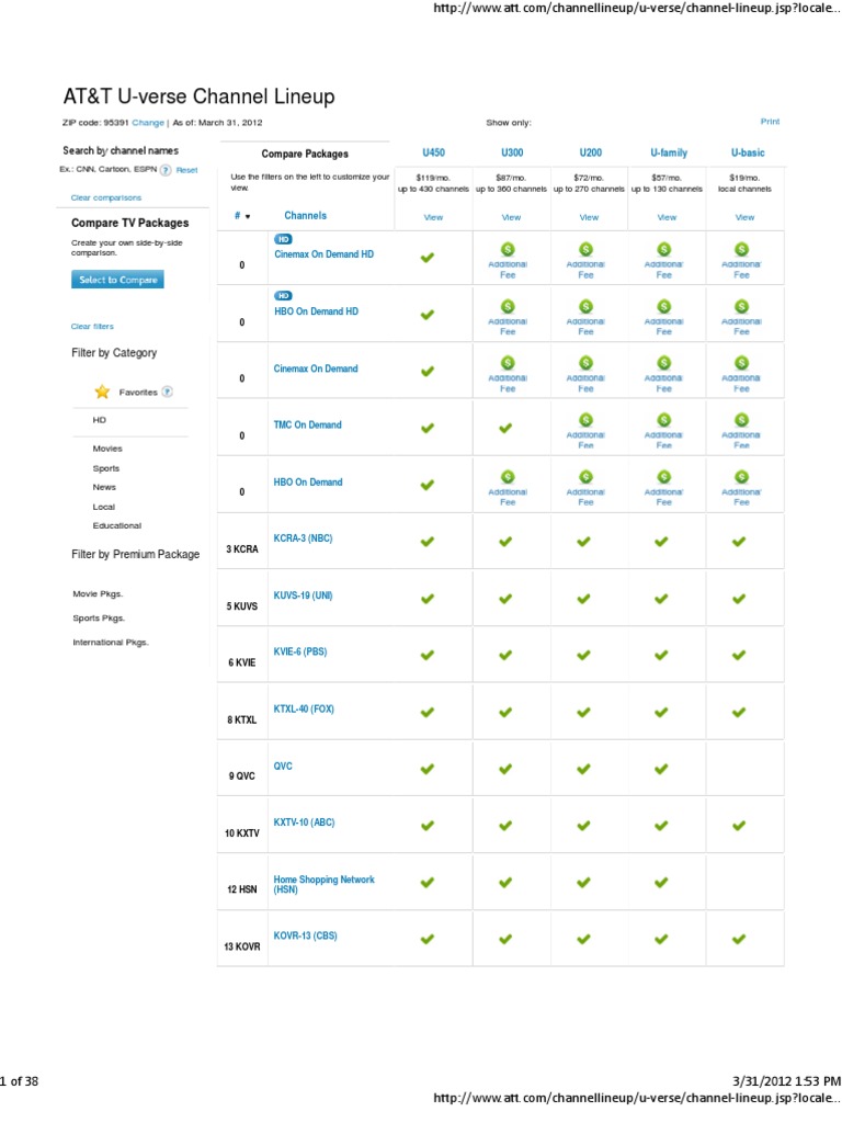 U-verse TV channel lineups vary based on location and U-verse TV package.